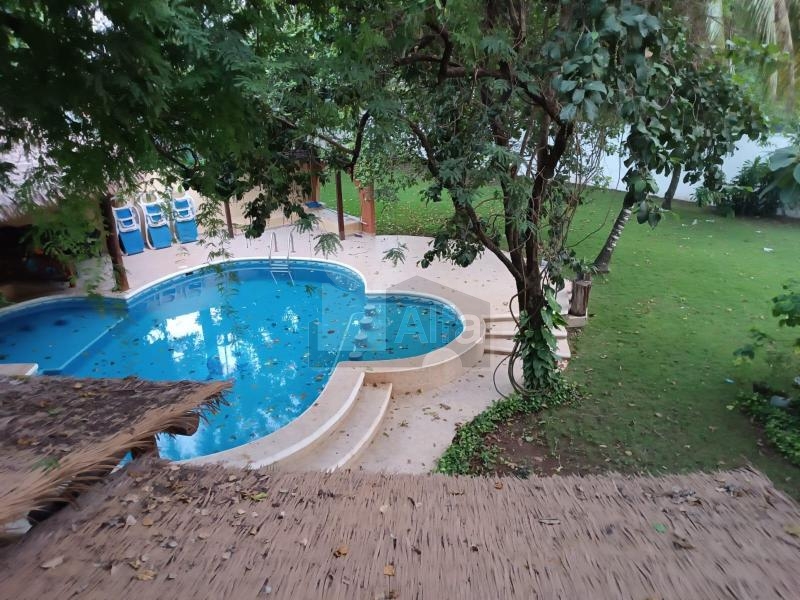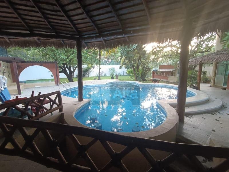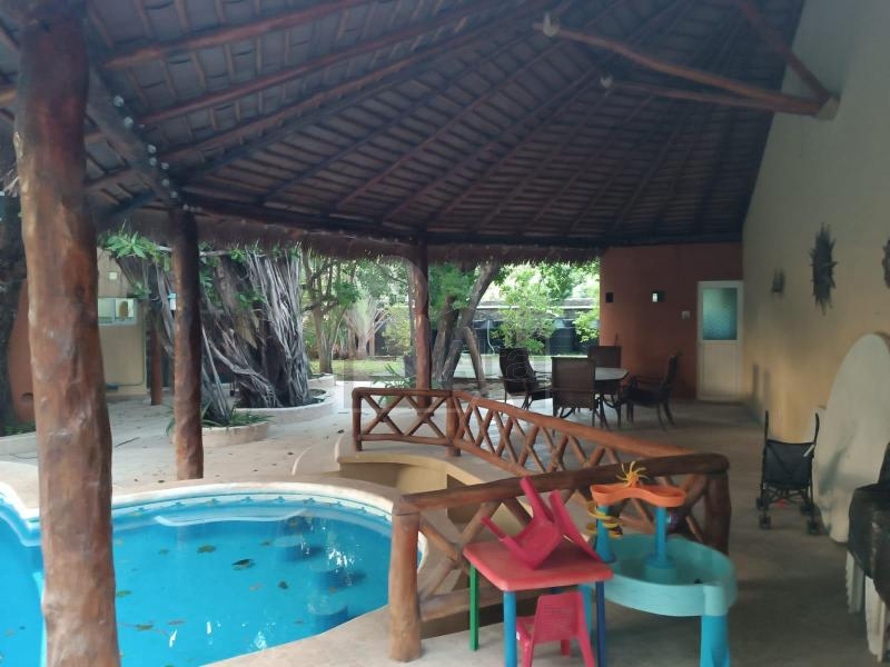 2 cuartos de servicio compartiendo un baño completo, palapa para eventos con medio baño, Alberca y jardín